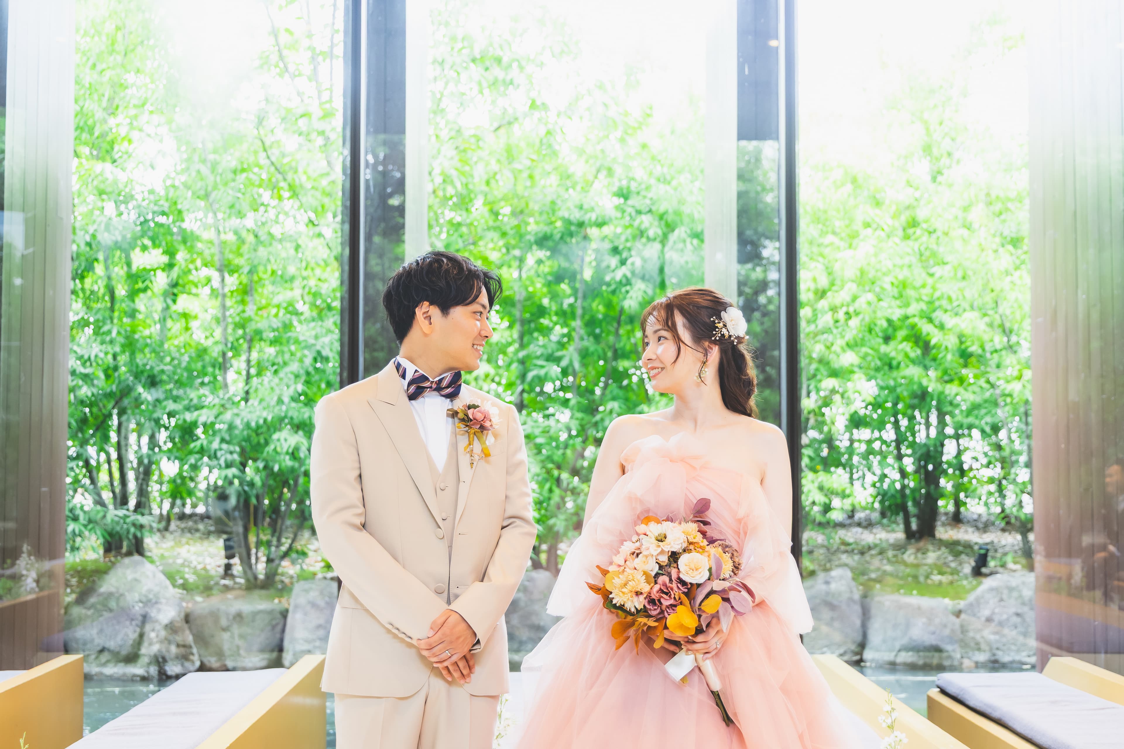 お越し頂きました。自然あふれるチャペルの雰囲気や雨でも綺麗に写真が撮れるチャペル