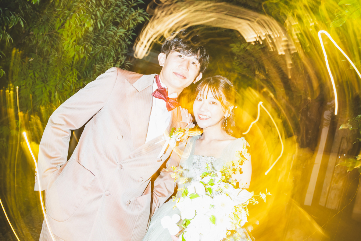 同じ職場で出会ったおふたり。 いつも笑顔で明るいおふたりに私含め周りの方々も笑顔ししてくれました。 そんなおふたりらしい結婚式にしたい、自分たちもゲストの皆様もありのまま自然体で楽しんでほしいと考えていました。
