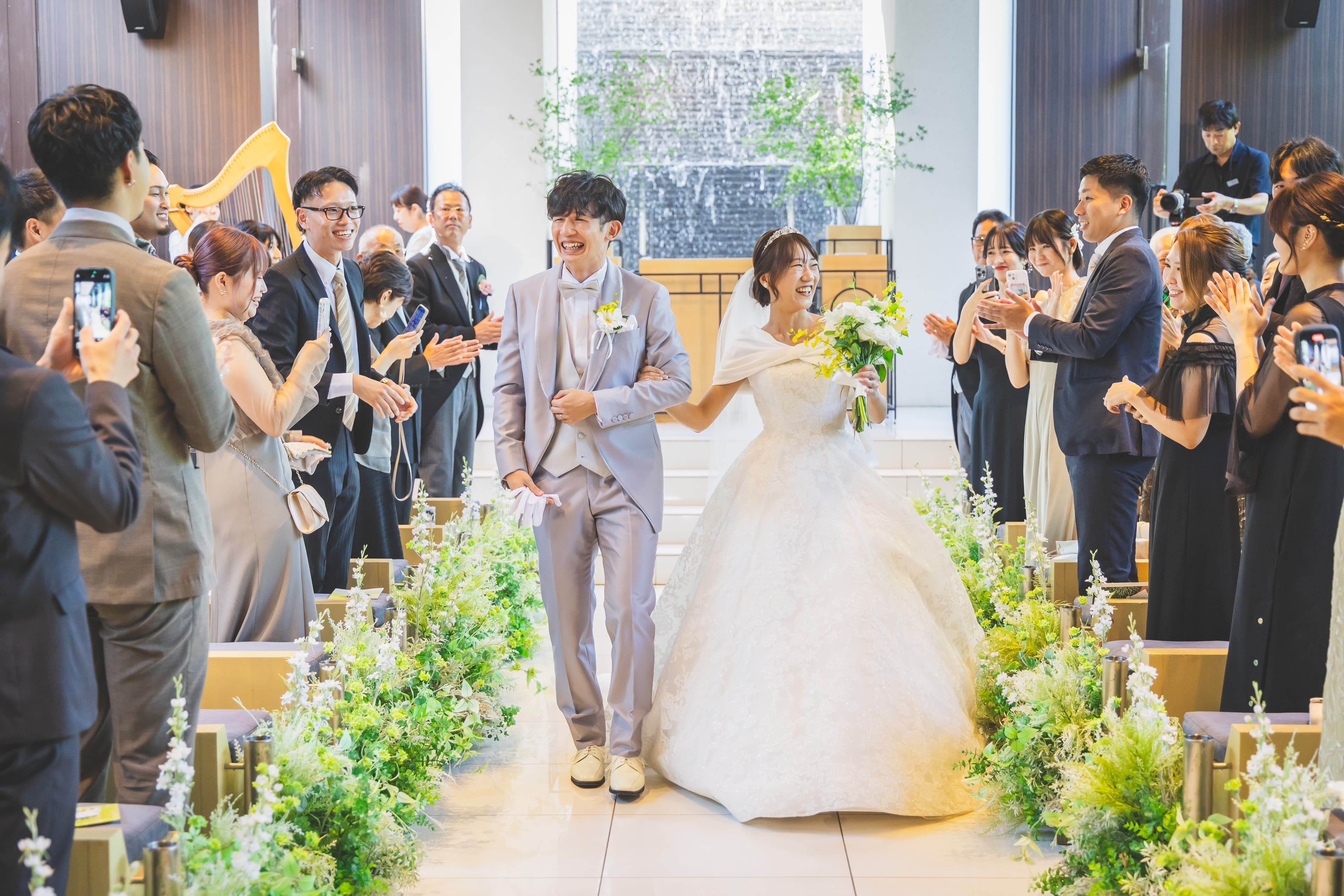 当日はたいとさんが緊張されているかな、と思ったのですが、挙式が始まった瞬間笑顔いっぱいで、それにつられるようにゲストのみなさまも笑顔であふれる1日となっていましたね。