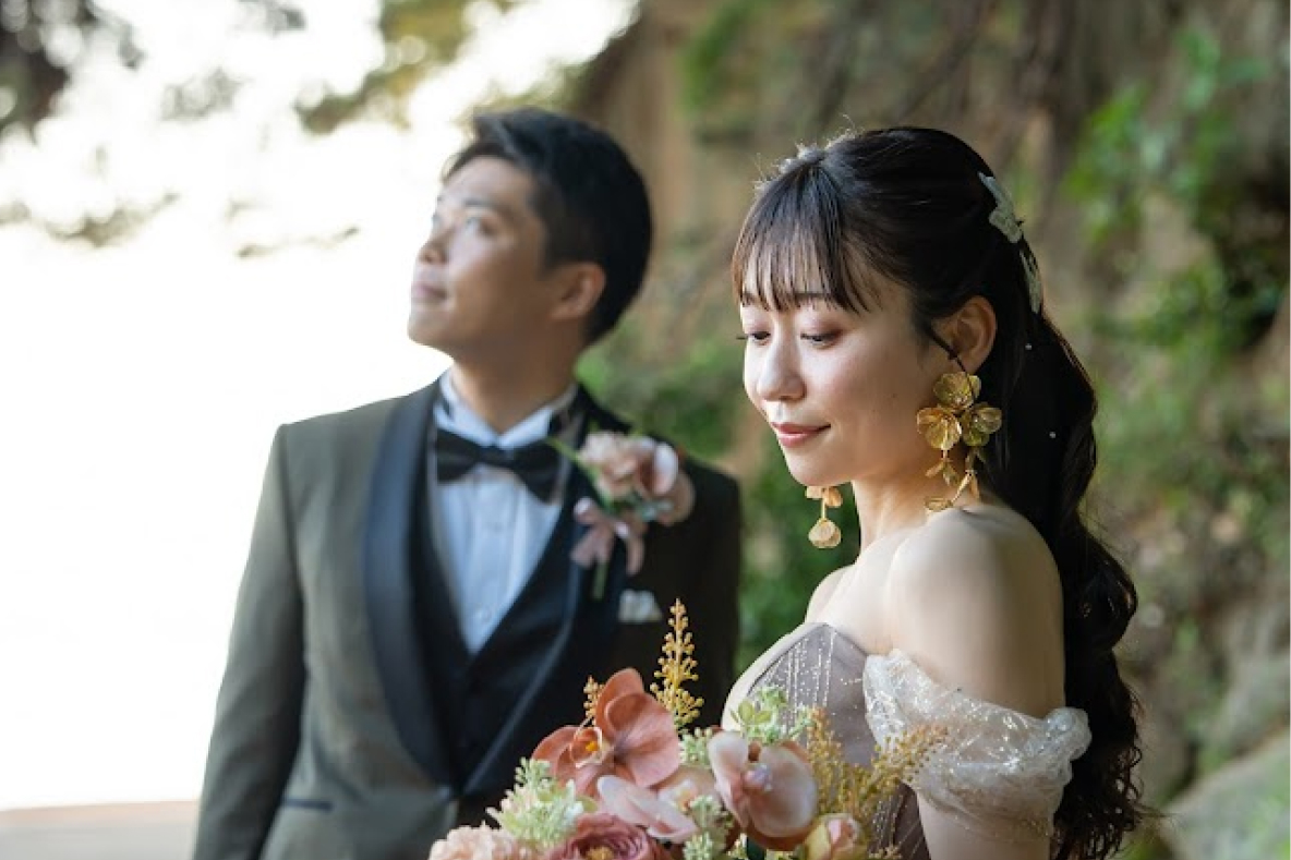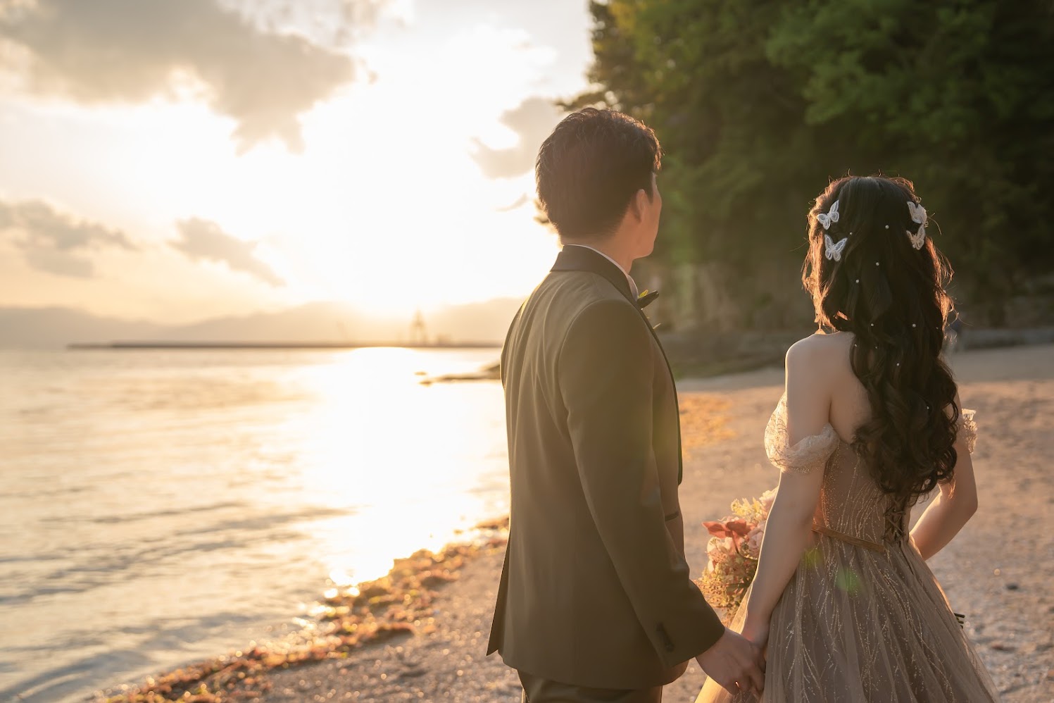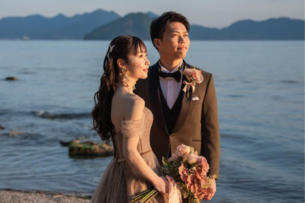 兵庫県と広島県の出身のおふたり。 ご家族やご友人が離れたところにいらっしゃる兼ね合いで、思い出にもしっかり残るフォト婚を選ばれました