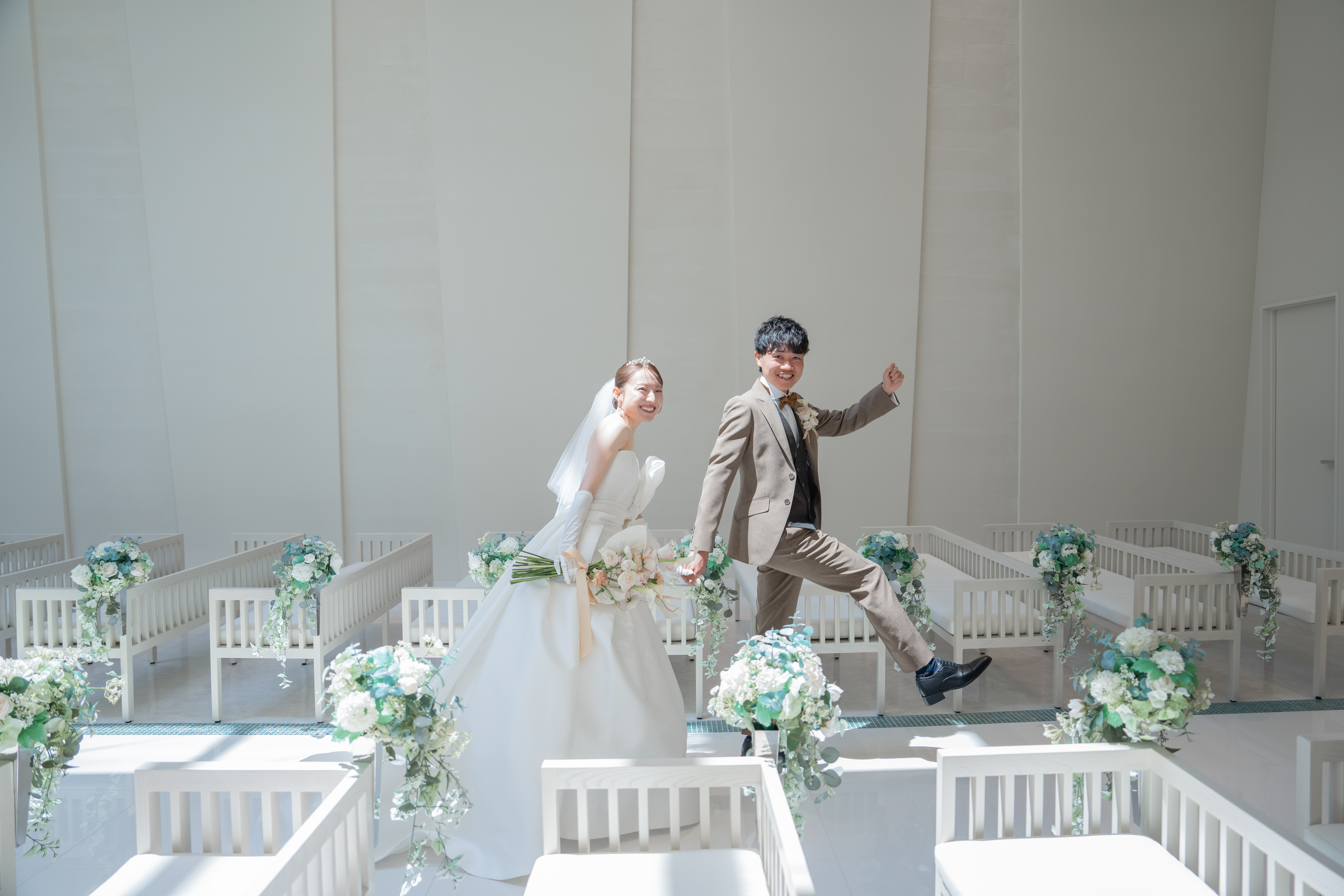 当日は本当にあっという間でした。本当にここで結婚式を挙げられて良かったと思います。私たちは、普段から楽しいことが大好きで、大好きなゲストの皆様に結婚式を楽しんでもらいたい!という気持ちがあったので、とにかくゲストの皆様を巻き込む参加型の演出をたくさん盛り込めた結婚式になったのではないかと思ってます。また結婚式を通して大切な家族、友人を思いながらメッセージを書いたり、楽しんでもらうような演出を考えたので夫婦としてもより一層絆が深まったと思いました。家族や友人からは結婚式をしたくなった、毎回ワクワクして楽しくてとても良い式だったよとたくさん言って頂き、当日はとても緊張もしましたが、ずっと楽しくてもう一回したいなと思うほど忘れられない一生の思い出になりました。私たちのしたい結婚式を叶えてくださった担当プロデューサーの豊田さんを初め、式場スタッフの方々が最後までサポートしてくださり安心して当日を迎えることができました。本当にありがとうございました!