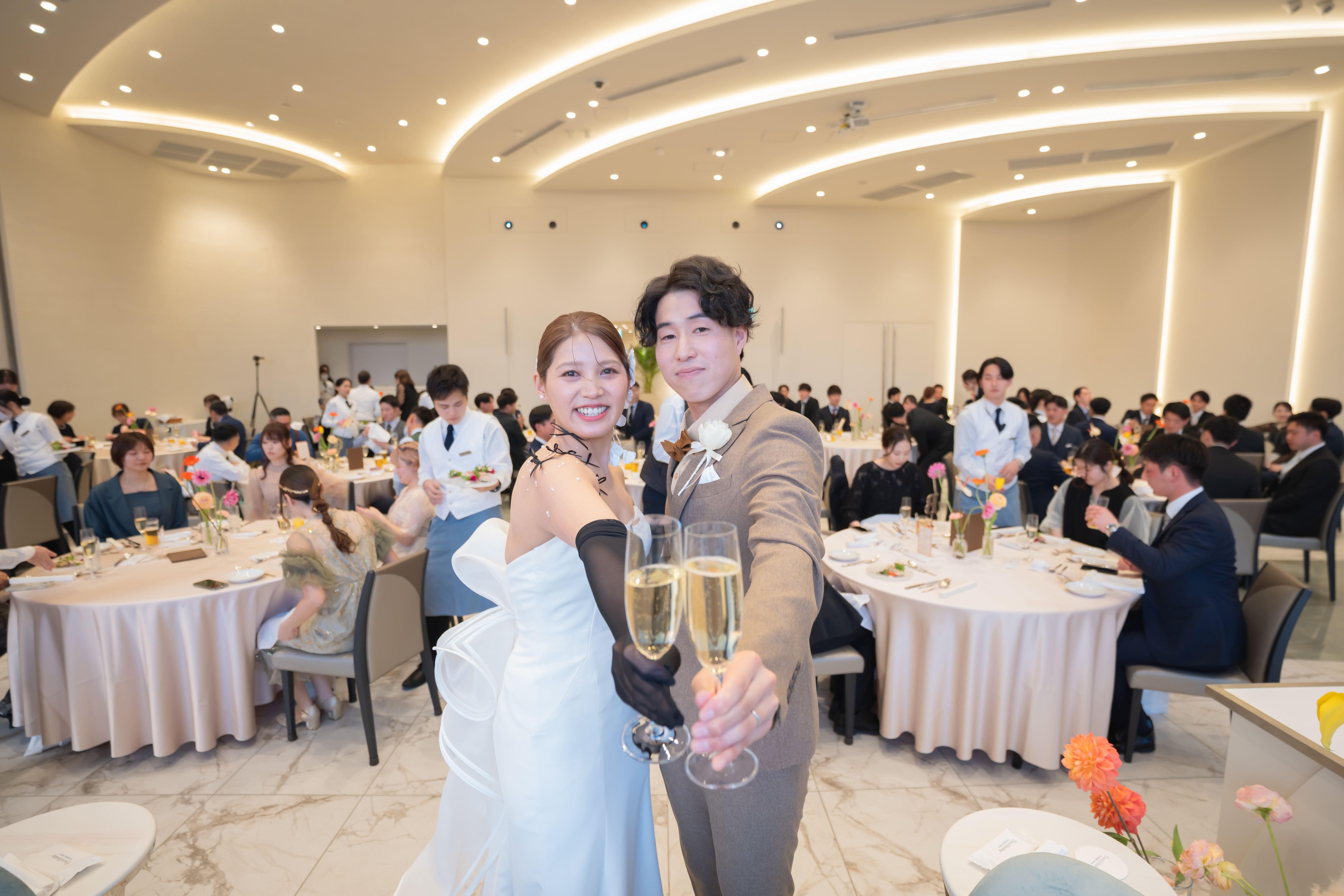 とにかく人思いなお2人は、ご友人も多く大人数での結婚式を決意されました。