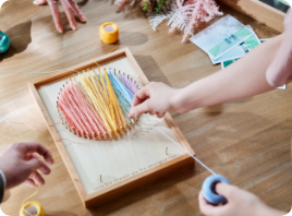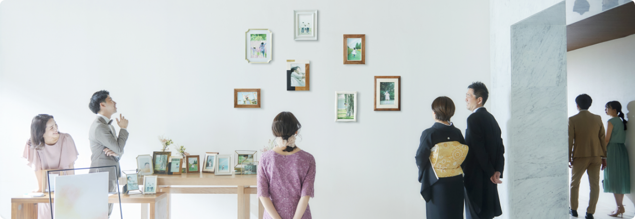 誓いの気持ちを糸に込め、ゲストのみなさまとともに紡ぐストリングアート。結婚式は、おふたりの価値観や家族として大切にしたい想いが込められた一日。そこに込められた誓いの言葉を形にして、未来のおふたりの永遠の指標に。