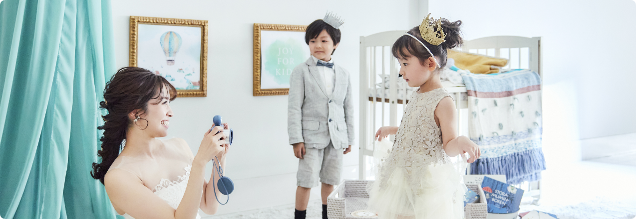 お子様連れのゲストのみなさまに。ベビーベッドや授乳室、お子様ランチなどのご用意をさせていただきます。参加されるお子様に、特別なSmileの記憶となる一日を過ごしていただけるようスタッフが心を込めておもてなしいたします。