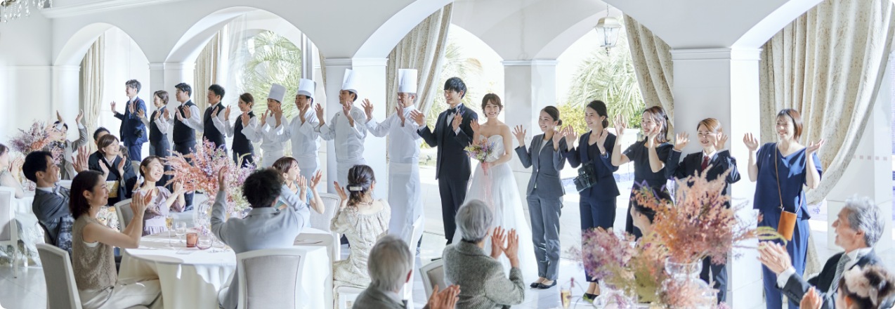 おふたりのSmileに関わらせていただいたキャストが、ご列席くださったゲストのみなさまに感謝の気持ちをお届けいたします。新郎様、新婦様、ご家族と一緒にフィナーレを盛り上げ、みなさまの記憶にのこる一日を彩ります。