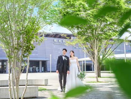 JR鹿児島本線「熊本駅」より徒歩3分の便利なロケーションに広がる光・空・緑・水に囲まれた別世界。 駐車場や提携ホテルのご案内、式当日の送迎バスもご手配可能なため、ゲストの皆さまを安心してお招きいただけます。