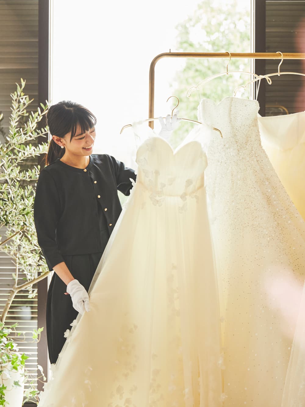 「Fiore Bianca」と「JUNO」、テイストの異なる2ブランドを展開。世界中を駆け巡り出逢ったデザイナーズブランドや日本の花嫁に向けたオリジナルドレスで人生に彩りを。約4,600点の幅広い選択肢の中から、お客様の魅力を最大限に引き出すことのできる運命の1着を見つけるお手伝いをいたします。