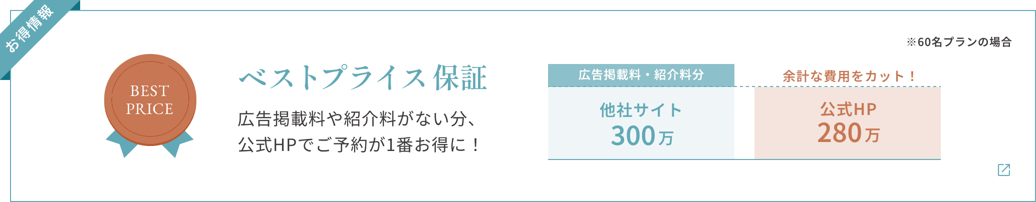 ◆80名限定プラン◆303万⇒231万円!大事なゲストの皆様と華やかに過ごす1日◎