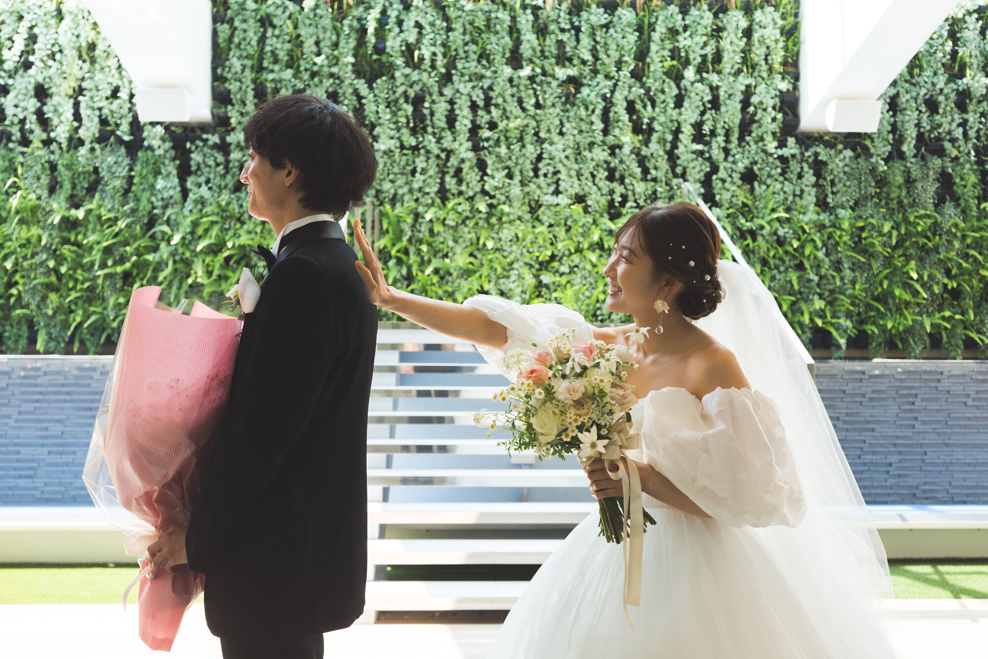 ご友人夫婦のきっかけで出会われたおふたりは「ふたりでいれば何をしていても幸せ」と声を揃えておっしゃるほど仲良しなカップル。明るく自然体な笑顔が印象的で、ご結婚式は「みんなが笑顔で、時々涙」をコンセプトに、ゲストの皆様の心も動く時間を過ごしたいとご準備を進めてくださいました。