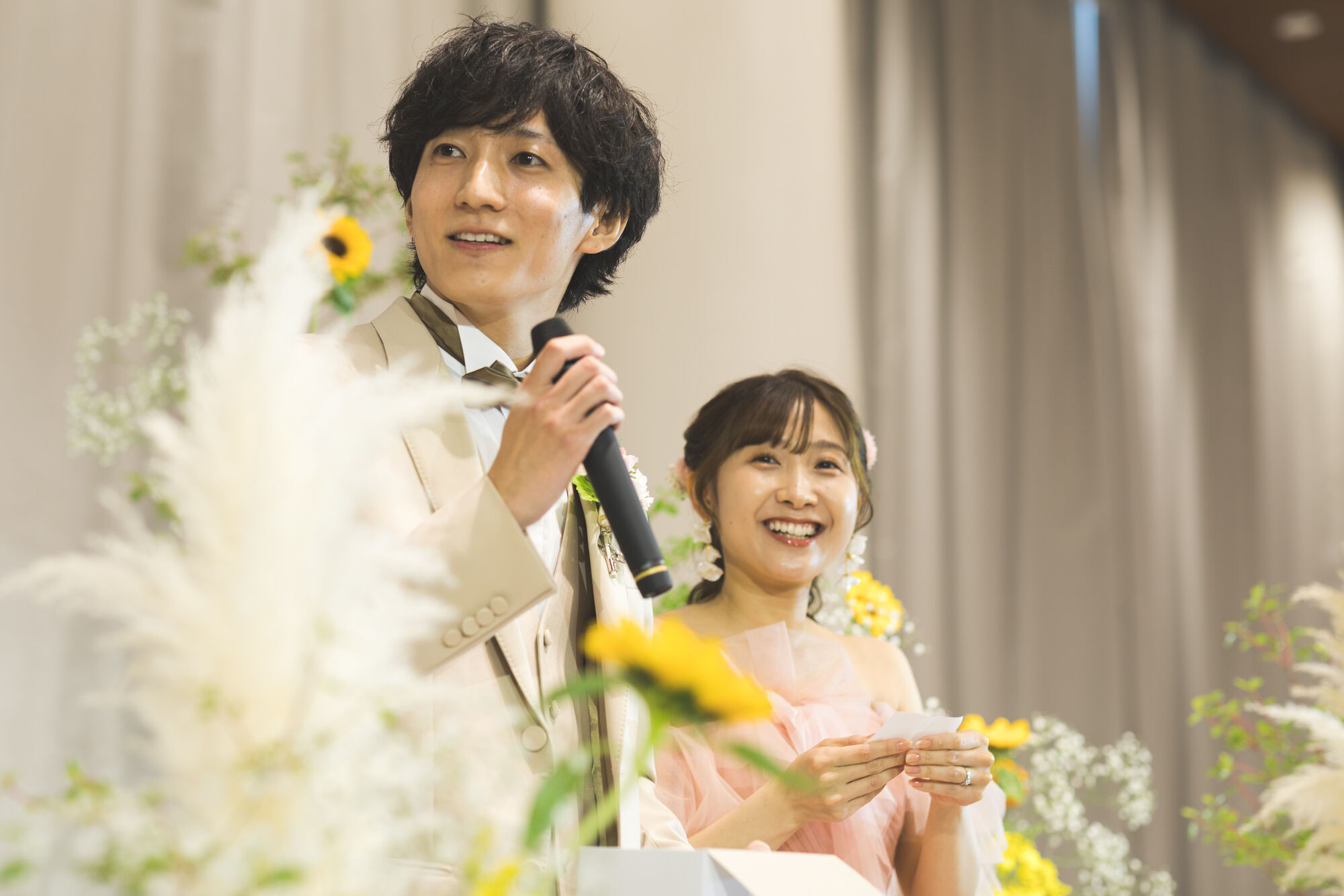 ご親族、ご友人、職場の皆さまがひとつの会場に集い、祝福の言葉と笑顔に包まれる光景は、おふたりにとっても新鮮で、かけがえのない時間だったのではないでしょうか。