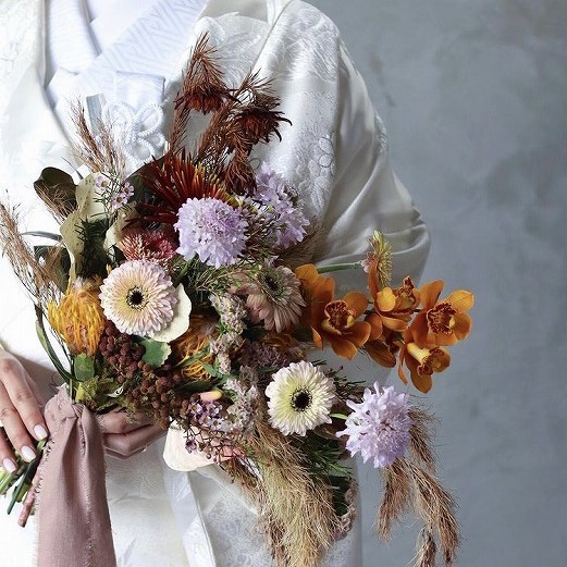 続いては打って変わって色味のあるくすみカラーのブーケです!