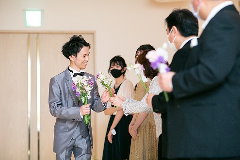 それを新郎が、集め1つのブーケにして