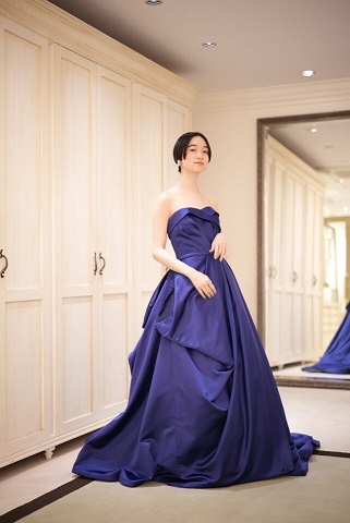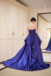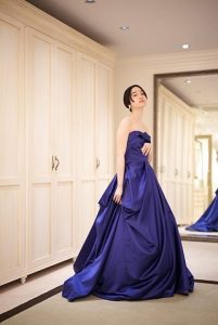 こちらのカラードレスは重厚感のあるサテン地のドレスでございま