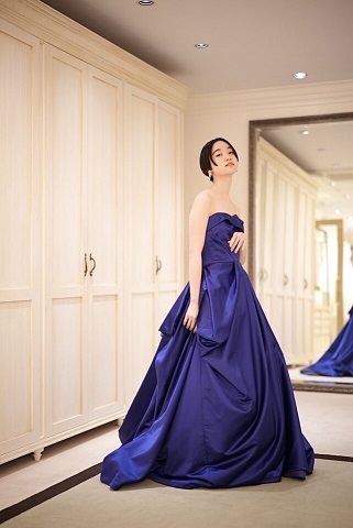 サテン地特有の光沢感はスポットライトを浴びると