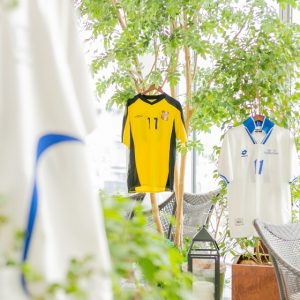 サッカーユニフォームを飾り付け。