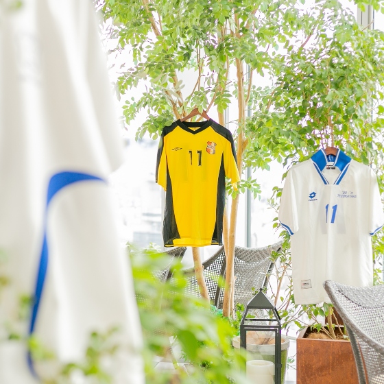 サッカーユニフォームを飾り付け。