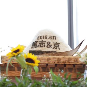 なんとこちらのおふたりはケーキのかわりにおにぎりを使われました!