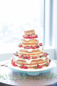 こちらはいま流行りのネイキッドケーキ!おしゃれなおふたりらしいケーキでした