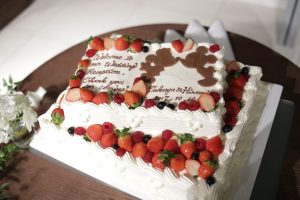 ケーキがでてきた瞬間おふたりらしさが一気に溢れ出ました。