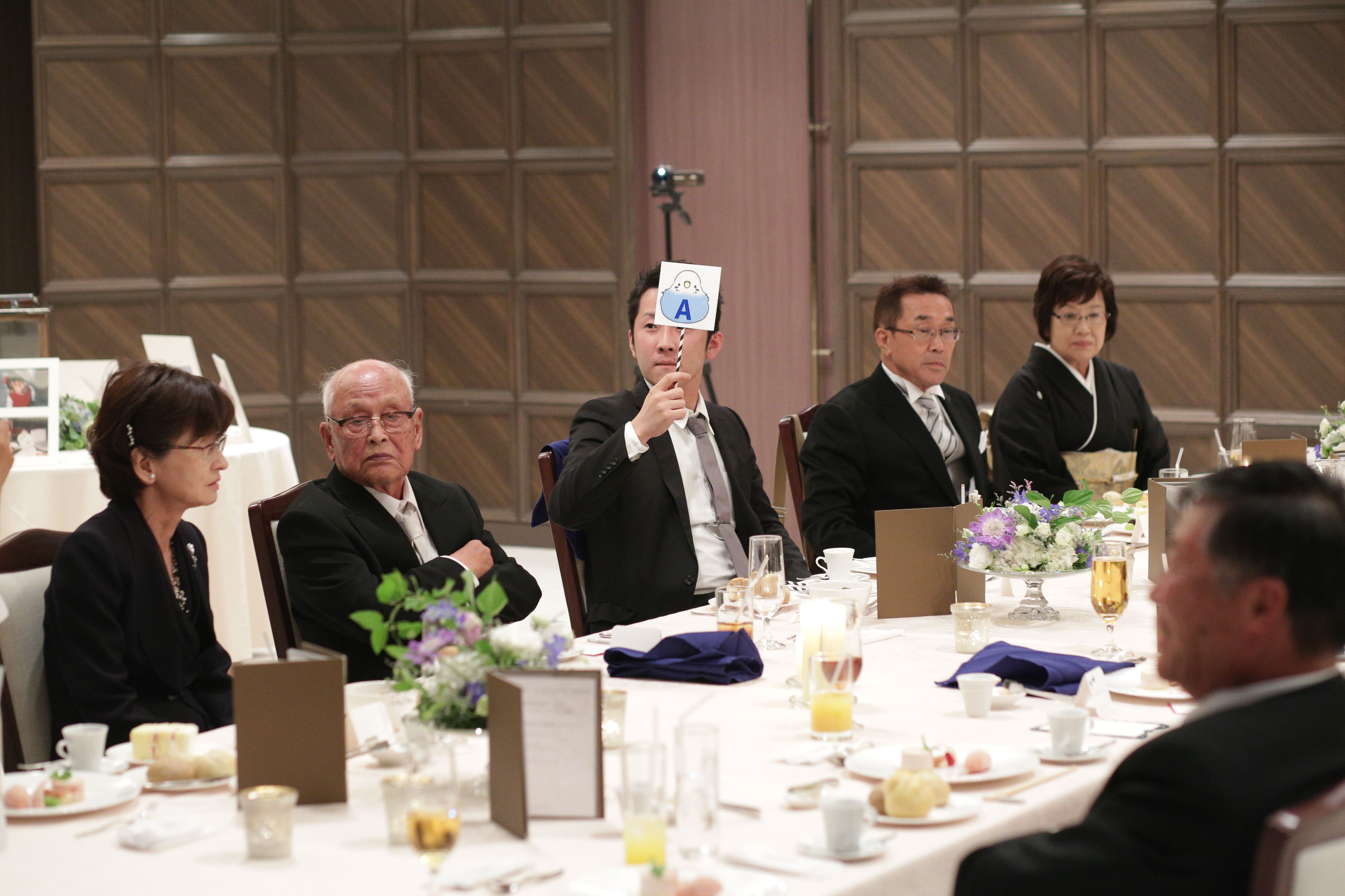 披露宴はお料理にこだわりお食事を楽しんでいただきながら、新郎新婦様からのクイズゲームを。