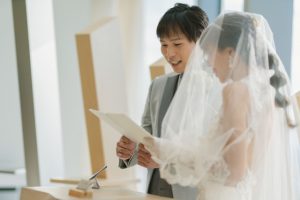 幸せいっぱいのおふたりが揃って祭壇にあがり愛を誓います。