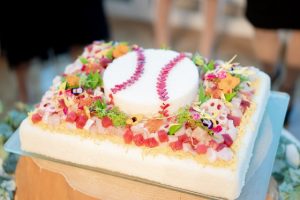 野球をモチーフにしたケーキもおふたりらしさが溢れています。〇
