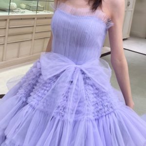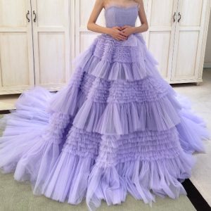 爽やかなラベンダーカラーの華やかなカラードレス。