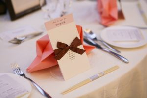 会場装飾や席次表は、赤や緑をテーマカラーにしたり