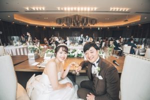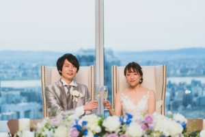 まずは、定番の高砂に座っている状態の乾杯ショット!