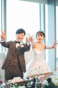 まずは、定番の高砂に座っている状態の乾杯ショット!