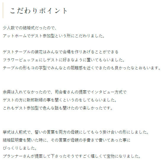 本日は、ご家族のみ・ご親族のみのアットホームな結婚式を紹介させていただきます。