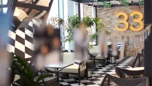 The 33の開放感あるラウンジやおしゃれなフラワーコートなどさまざまな場所におふたり