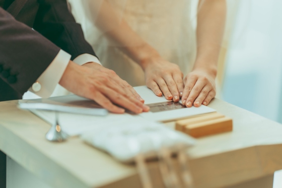 証明書の隣にお2人のお名前が書かれたプレートをはめて完成させるプレートセレモニー