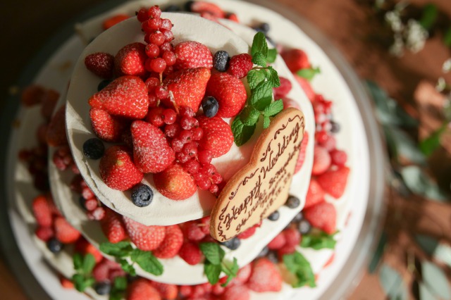 フルーツいっぱいケーキ!流行のネイキッドケーキにフルーツを沢山のせたケーキあオシャレで人気です!