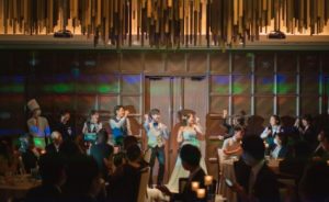 通常のご披露宴はエンディングムービーが結び、そのままお見送りの流れになるところ、Dears Weddingではありがとうの気持ちを込めて新郎新婦様とスタッフ全員がゲスト皆様にとびきりのSmileを届けるシーンです