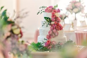 新郎新婦様がお互いにケーキを食べさせ合うシーンですが、新郎様から新婦様には”一生食べ物に困らせません”