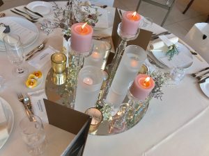 また、ゲストテーブルはおふたりのテーブルコーディネートとリンクさせた大人可愛いピ