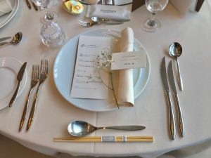さらにメニュー表にもカスミソウを添えると統一感があって素敵ですよね。