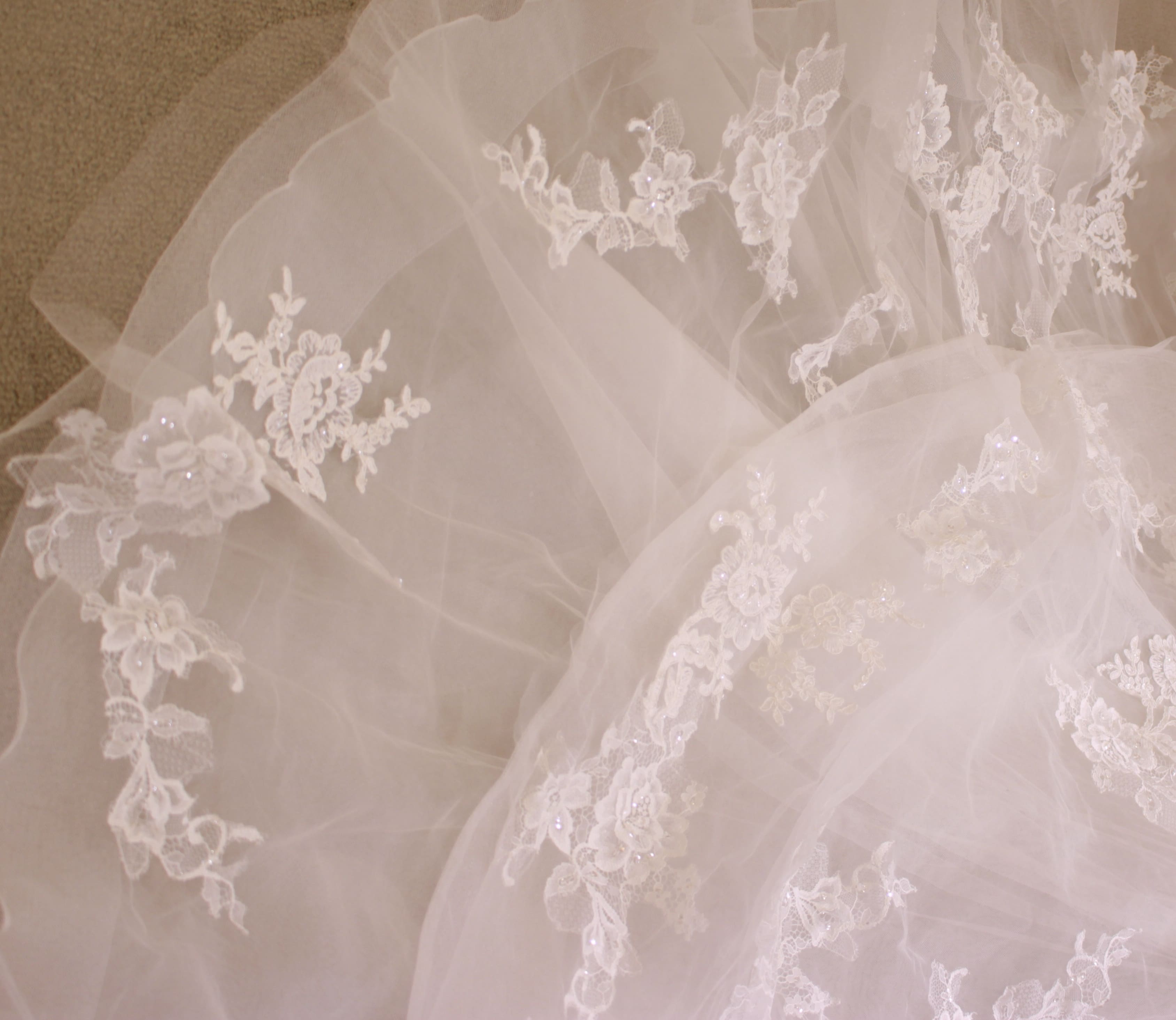 ドレスの輝きに合わせ大きめのボンネを使用して頂くことでより統一感のあるコーディネートにしていただけます!