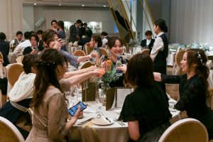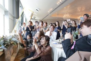 新郎新婦入場前のゲストの様子やケーキ入刀をしている際のゲストの様子等々