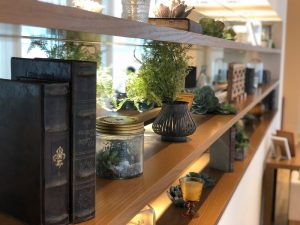 ちなみにサロンの飾り棚に飾られているグッズは披露宴会場前の廊下の飾り棚と同じイメージでございます。
