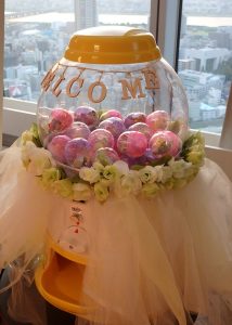 ブログをご覧の皆様こんにちは 本日は演出担当よりお送り致します。 涼しくなって過ごしやすくなってきましたが、季節の変わり目で体調は崩してないですか? 結婚式の準備をしてる方もいると思いますが、無理せずゆっくり進めてくださいね。 さて皆さん、ご披露宴の「演出」について何か考えていますか? 「演出」ってすごくざっくりしててイメージしづらいですよね。 結婚式は「幸せになります」と誓いをたてる場、そしてゲストの皆様に報告・認めてもらうセレモニーなので、 厳かに、そして感動的な雰囲気で進んでいきます。 そしてその後は、来て頂いたゲストへおもてなしをするご披露宴のスタートです。 もちろん、おいしいお食事とお飲み物で最高のおもてなしは出来ますが、 せっかく来て頂いたゲストにもっと楽しんで貰う為に、「演出」を取り入れてみてはいかがでしょうか。 ・ゲストが参加出来るイベントを演出する お色直しで着る衣装の色当てクイズや、宝探しゲームなど、全員で行うイベントは盛り上がる事間違いなし! これにガチャガチャを利用して、宝の隠し場所のヒントを入れたり、くじ引きとして使ったりすると、より一層ワクワク感が出ると思います。 当たりのプレゼントをおふたりに関連してる物にすると盛り上がるし、世界に一つしかないので記念になると思います。