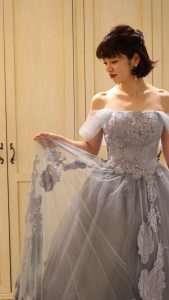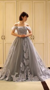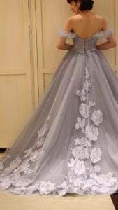トレーンの部分にも大きなお花の刺繍が施されておりますので、
