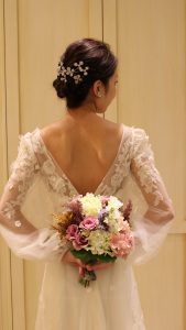 ドレスのフラワーとマッチしたヘッドアクセサリーをセレクトさせて頂きました。