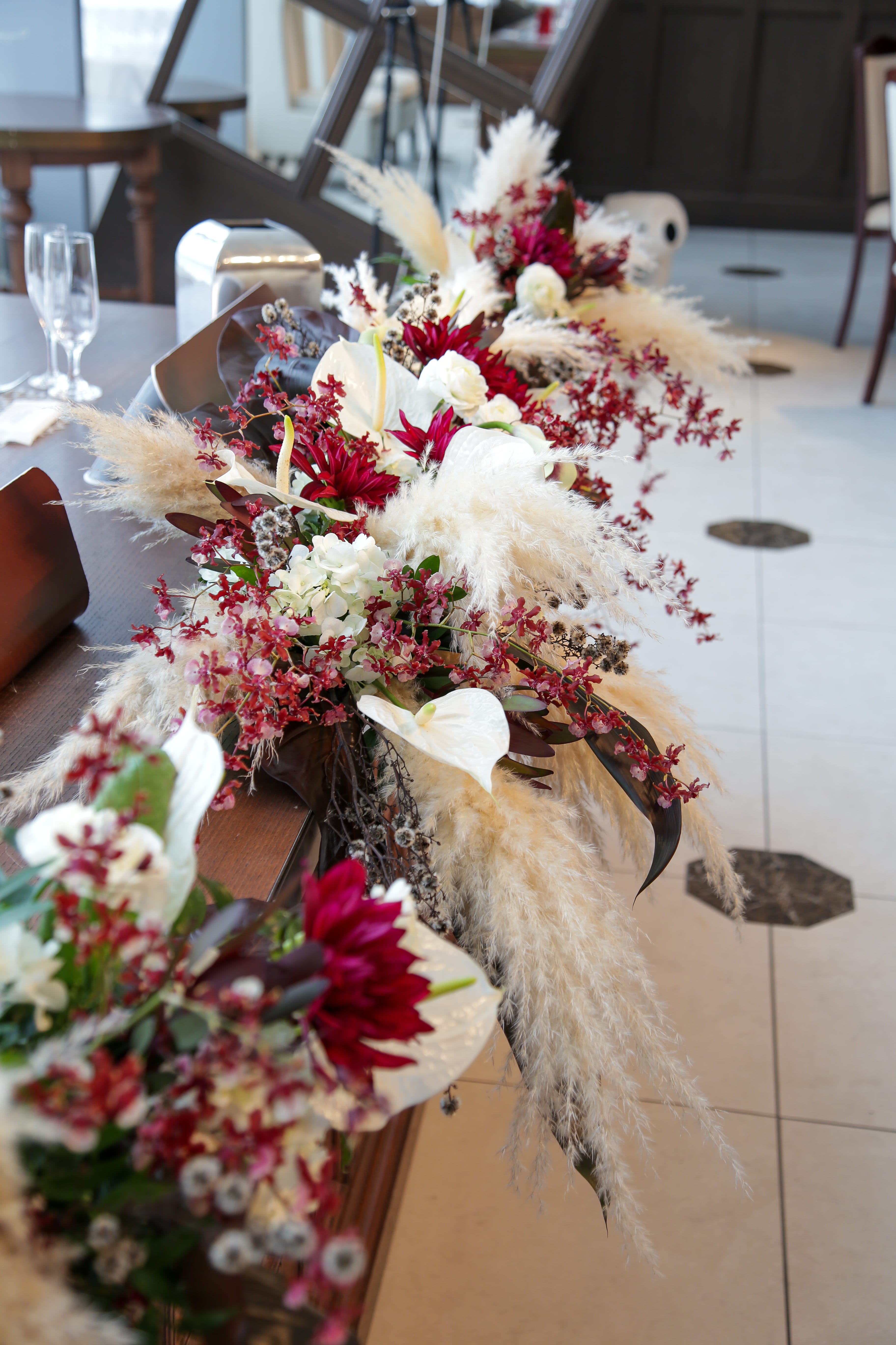 まずはフラワーコートの空間でbouquetを中心に撮影した新郎新婦shot!