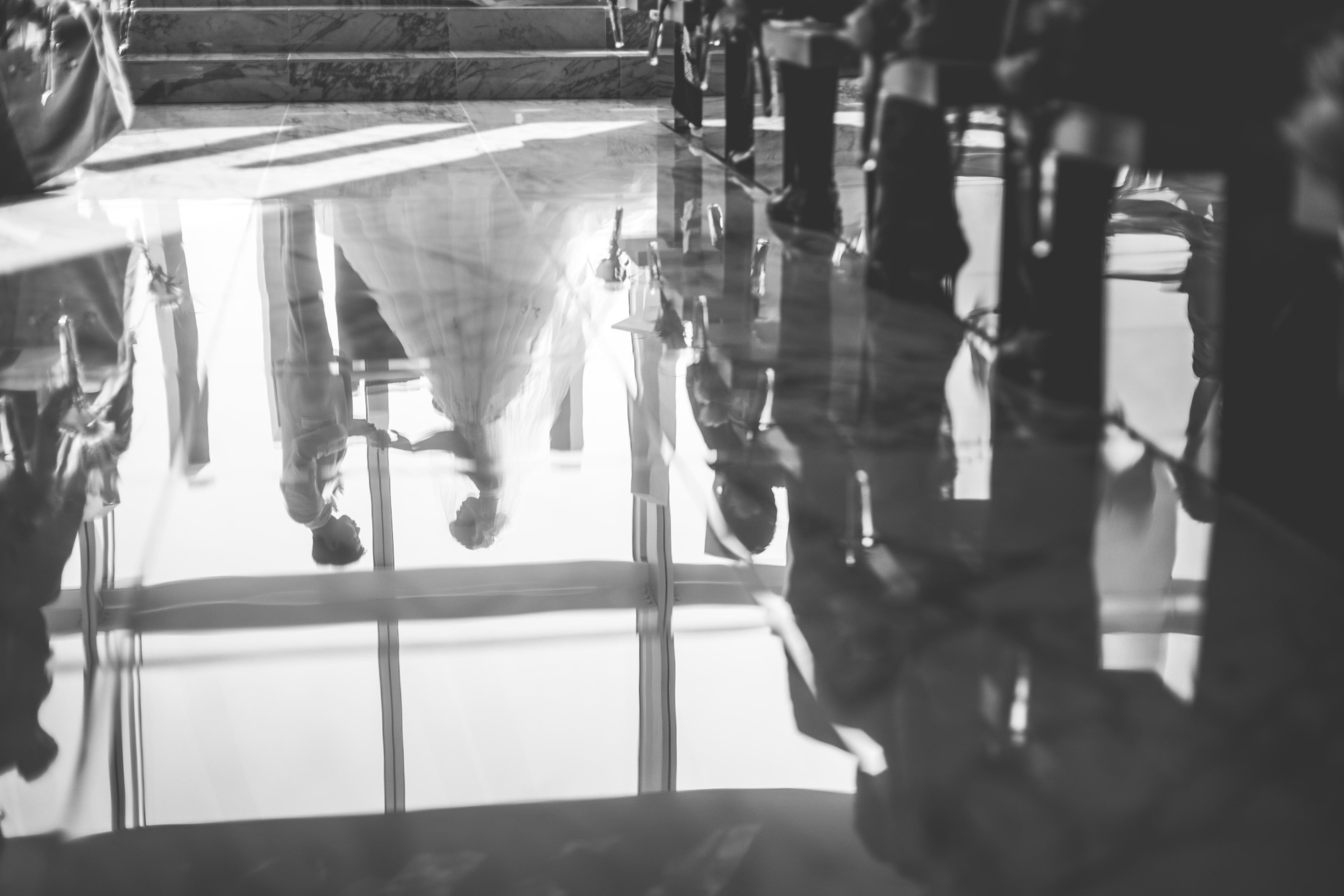 バージンロードに映し出されるおふたりの姿もとっても綺麗に反射します。