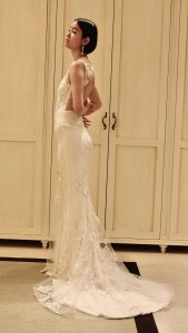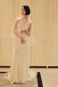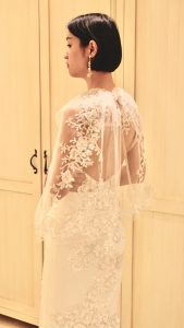 黒髪のボブでもお似合いになられると思いますのでヘアが短めの花嫁様にも是非、お召しいただきたい1着でございます。