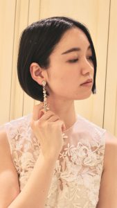 イヤリングも大振りのものを付けていただくとより素敵なコーディネートになります。