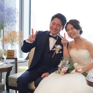 とっても笑顔がキュートな、ハッピーオーラ全開の新郎新婦さま。