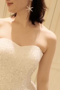 ドレスの輝きに合わせてイヤリングもキラッと輝くもので。